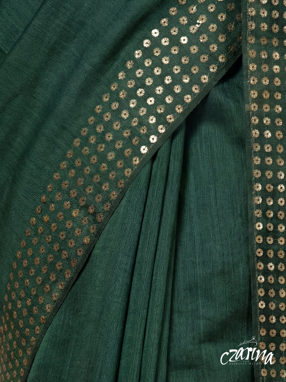 Bottle Green Bailou Saree with Embedded Sequins