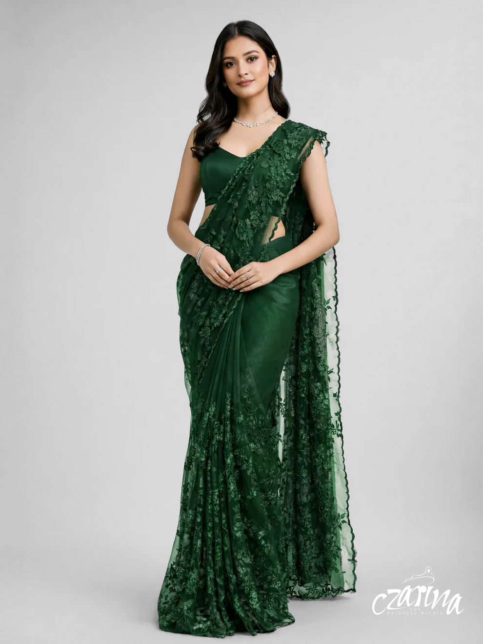 • Silk net fabric keeps the saree light and breathable while maintaining a refined silhouette